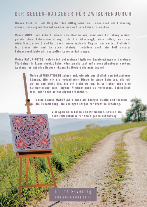 Das Buch ist sehr interessant zu lesen, es beruhigt und erfreut mit schönen Naturfotos und bunten Mandalas.